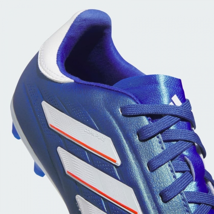 Quando scarpe e pallone diventano tutt'uno lo spettacolo è assicurato. Una garanzia sul campo da calcio. Quando allacci le adidas Copa Pure, in un attimo ogni cosa è al suo posto. Questa versione junior ti regala un look iconico e un tocco di palla impeccabile grazie all'avampiede trapuntato in pelle bovina. La suola specifica assicura un grip superiore sull'erba asciutta. I dettagli raffinati, come il tallone a contrasto, testimoniano la tua dedizione al calcio.