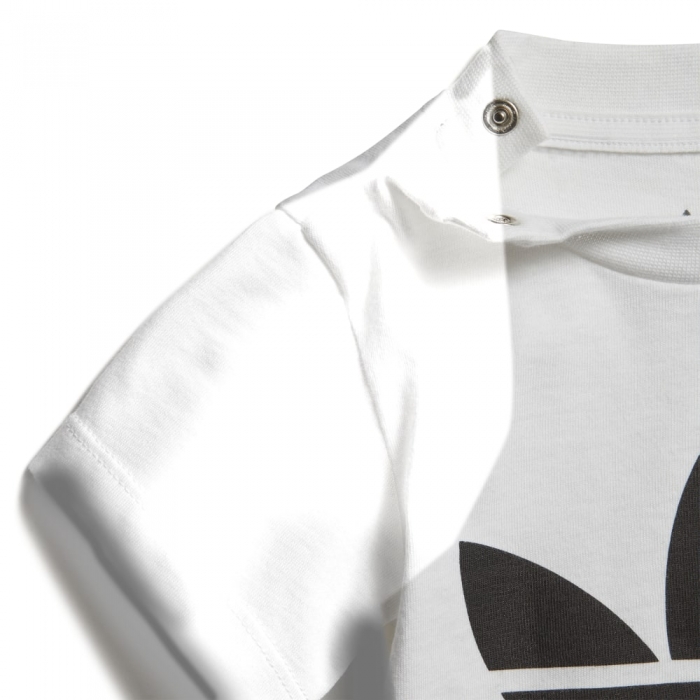 Un modello basic con qualcosa in più. Rifinita da un logo del Trifoglio oversize, questa T-shirt infant rispecchia in pieno lo stile adidas Originals. La struttura in jersey di cotone assicura una sensazione di grande morbidezza.